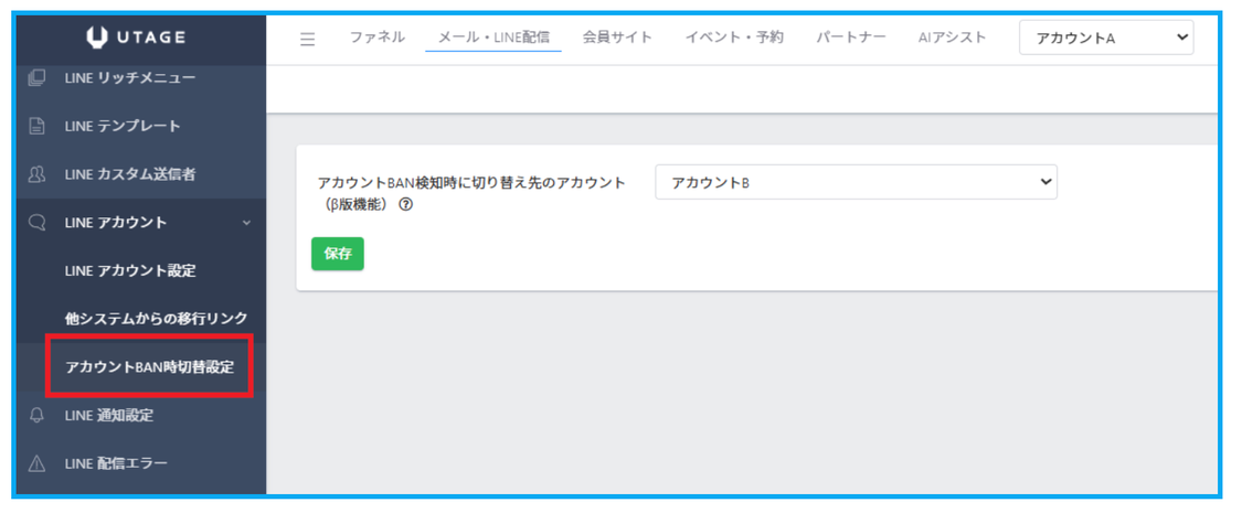 UTAGE 公式LINEのアカウントBAN切り替え設定 具体的な動作方法