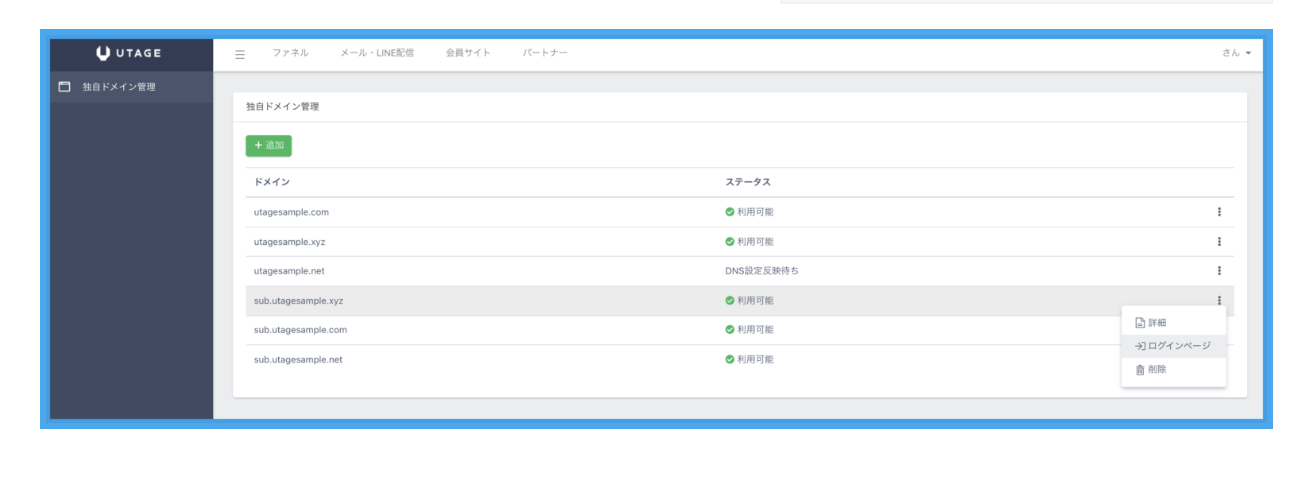 UTAGEでは「lp.example.com」や「member.example.com」のようなサブドメイン形式でしか設定できない仕様になっています。